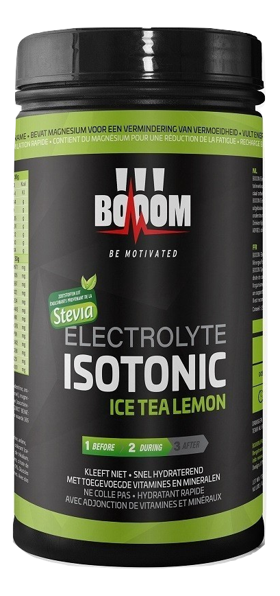 De BOOOM Isotonic sportdrank bevat een mix van maltodextrine en dextrose. Een zogenoemde combinatie van snel- en langzaam opneembare koolhydraten. Deze combinatie zorgt voor een snelle en langdurige energie toevoer. Per 100 gram bevat de Sports Drink 94 gram koolhydraten. Ook bevat de isotone sportdrank veel mineralen en vitaminen. Zo bevat het kalium, calcium en magnesium. Fosfor ondersteunt de energiestofwisseling. De drank is erg licht van smaak en wordt goed verdragen door de maag. Daarnaast is de sportdrank voorzien van de natuurlijke zoetstof stevia. Ook bevat de sportdrank geen kunstmatige geur-, kleur of zoetstoffen.