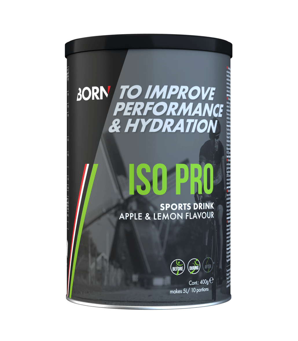 Deze BORN Iso Pro sportdrank zorgt er tijdens het sporten voor dat koolhydraten razendsnel worden aangevuld en de vochtbalans op pijl blijft. De Iso Pro is speciaal ontwikkeld voor de duursport en in samenwerking met de wielrenners van het Team Sunweb. Het voordeel van de Iso Pro is dat het een unieke 2:1 verhouding van glucose en fructose bevat. Dit levert de sporter een verhoogde inname van 90 gram koolhydraten per uur in plaats van het normale gemiddelde 60 gram. De sportdrank is daarnaast glutenvrij, niet te zoet en plakt niet.