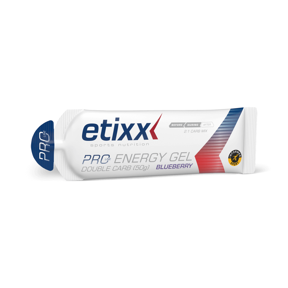 Tijdens de inspanning kan je deze eenvoudig aanvullen met een sportdrank, energiereep of hardloop gelletjes. Het voordeel van een energie gelletjes ten opzichte van een sportdrank is dat een gel een geconcentreerde koolhydratenbron is. Verder wordt de Etixx Double Carb Energy Gel vele malen sneller door het lichaam opgenomen dan een traditionele energiereep. De Double Carb Energy Gel bevat daarnaast de 2:1 verhouding glucose : fructose. Deze verhouding zorgt voor een betere koolhydraatopname en een langdurige afgifte van de energie. Tot slot is de Double Carb Gel verkrijgbaar in de smaken Blueberry, Peach en Mango. Mango bevat 80 mg cafeine. Verder is de energiegel glutenvrij en geschikt voor vegetariërs en veganisten.