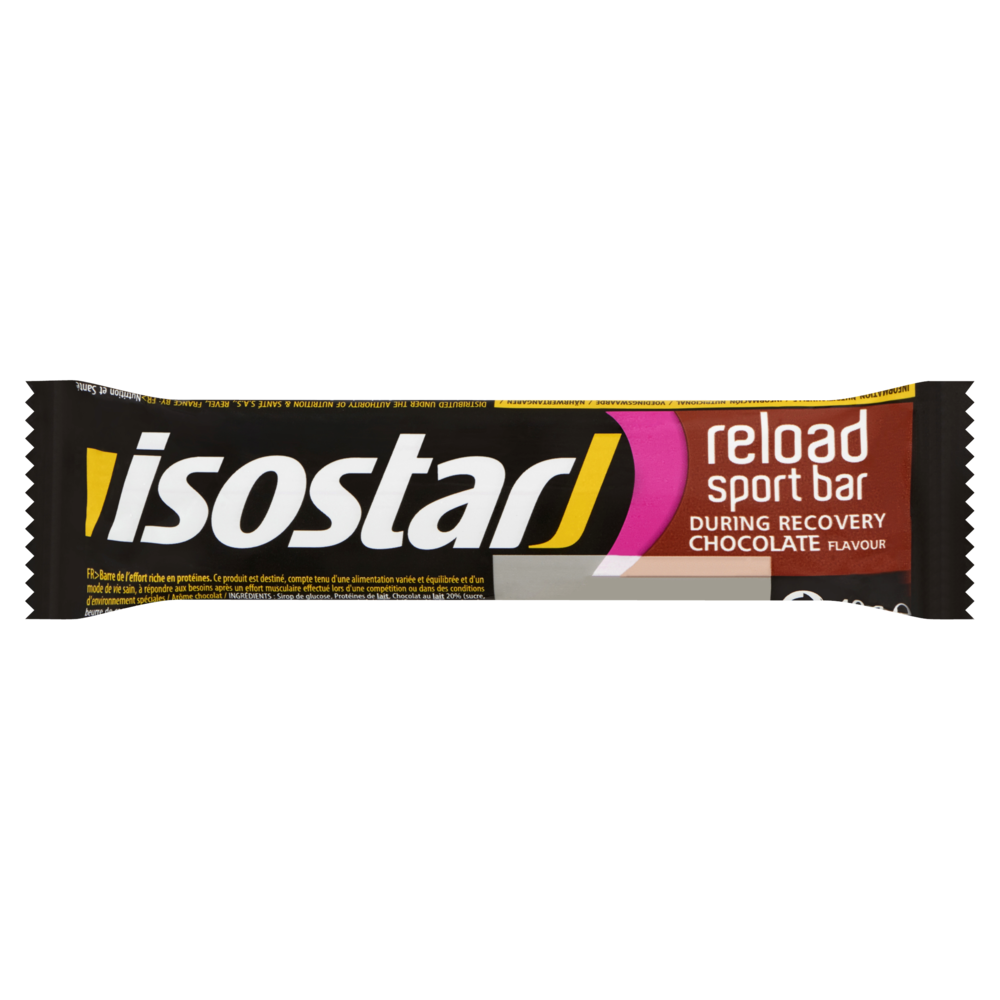 Na afloop van je wedstrijd of training ben je niet altijd in staat om een Recovery Drink te nemen. Een recovery bar zoals de Isostar Reload Sport Bar biedt dan uitkomst. De reep bevat een hoog gehalte eiwitten en bevat belangrijke mineralen en vitaminen. Zo bevat de reep 20 gram koolhydraten en 10 gram eiwitten. De toevoeging van eiwitten ondersteunen een snel herstel van de spieren na een intensieve training of wedstrijd. De koolhydraten zorgen er voor dat de glycogeenvoorraad snel wordt aangevuld na het sporten.