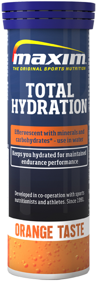 Maxim Total Hydration zijn sportdrank bruistabletten om mee te nemen tijdens of voor het sporten. Op deze manier kun je erg makkelijk en snel je eigen sportdrank klaar maken. Ideaal bij tochten om bij een pauzepost snel een bidon te vullen met sportdrank. Of bij de voetbal, tennis, volleybal of andere teamsporten, waar je snel je sportdrank wilt mixen. Water in de bidon, Maxim Total Hydration bruistablet erbij en klaar is je hypotone sportdrank in de smaak Orange.