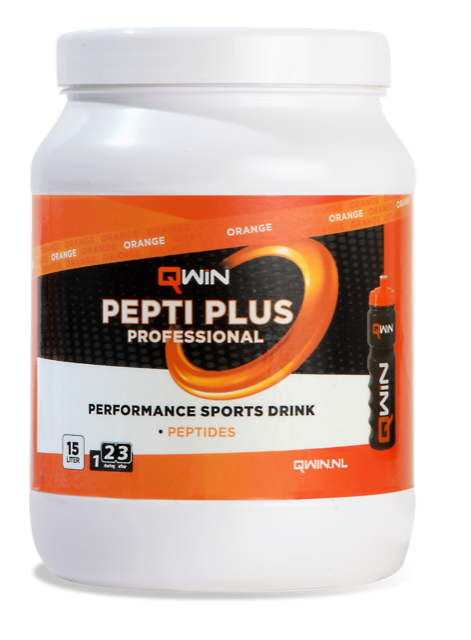 De QWIN PeptiPlus sportdrank is zeer populair onder duursporters en kan zowel tijdens als na je inspanning worden gedronken. De drank is gemaakt op basis van een unieke samenstelling van eiwitten en koolhydraten. Hierdoor wordt de sportdrank tijdens en na het sporten snel opgenomen in het lichaam. Zo ontvang je per bidon van 500 ml maar liefst 30,4 gram koolhydraten en 5 gram eiwitten. Doordat de eiwitten in kleine stukjes zijn opgedeeld (eiwithydrolysaat) worden ze makkelijker en daardoor sneller opgenomen. De toevoeging van peptiden ondersteunen zo een snel herstel van de spieren na een intensieve training of wedstrijd. Eiwitten bevorderen niet alleen een optimaal spierherstel, maar dragen ook bij tot de instandhouding van de spiermassa.