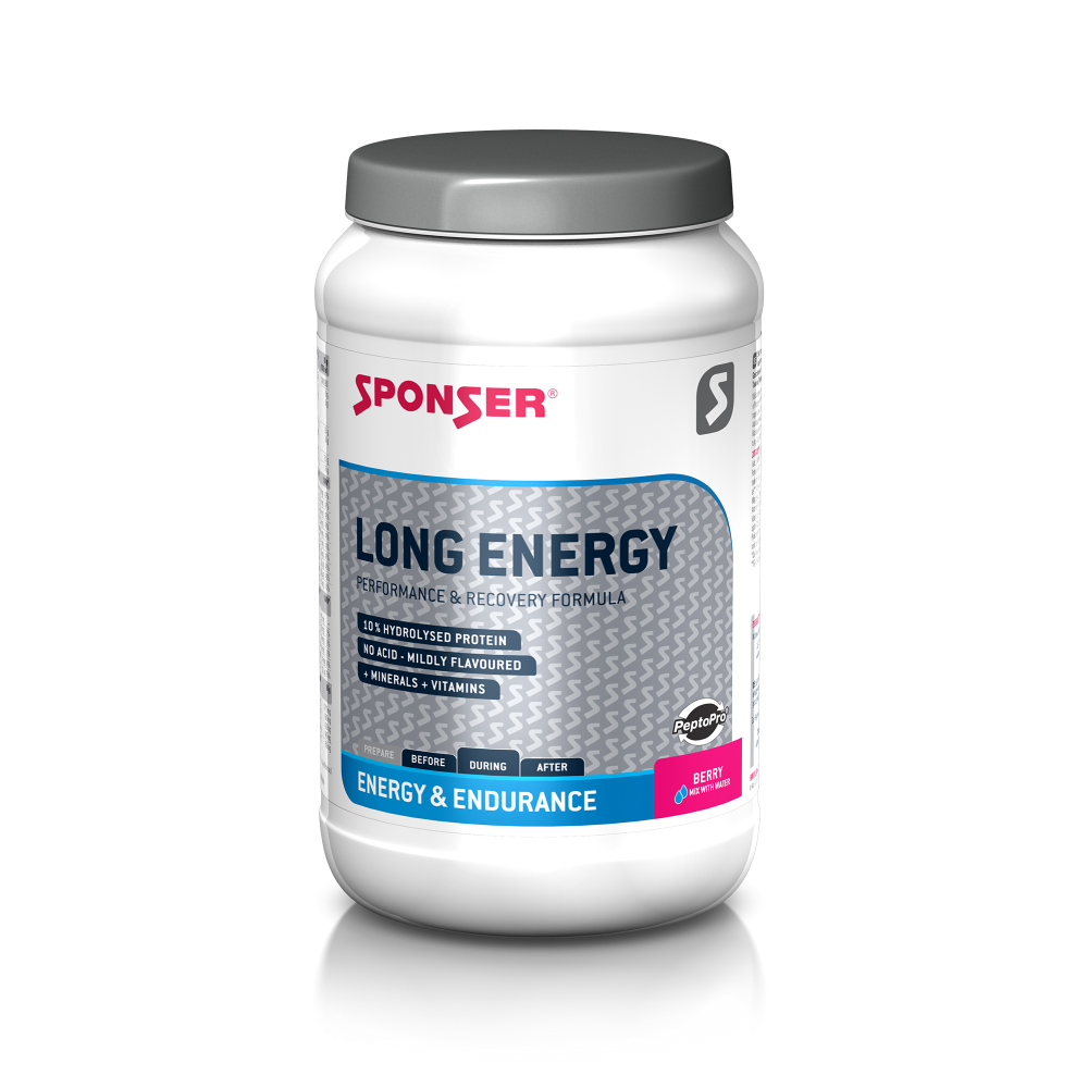 Sponser Long Energy 10% Protein is een sportdrank speciaal voor sporters die langer dan 2 uur sporten. Het bevat een optimale mix van 90% koolhydraten en 10% PeptoPro® eiwitten. De Long Energy 10% is speciaal ontwikkeld voor het zwaardere werk. Ga je zeer intensief sporten? Kies dan voor de Sponser Long Energy. Is de inspanning kort, maar zeer intensief, dan is de Long Energy ook een goede sportdrank. De Long Energy bevat 90 gram koolhydraten en 10 gram PeptoPro® eiwitten. De toevoeging van eiwitten ondersteunen een snel herstel van de spieren na een intensieve training of wedstrijd. Eiwitten bevorderen niet alleen een optimaal spierherstel, maar dragen ook bij tot de instandhouding van de spiermassa.