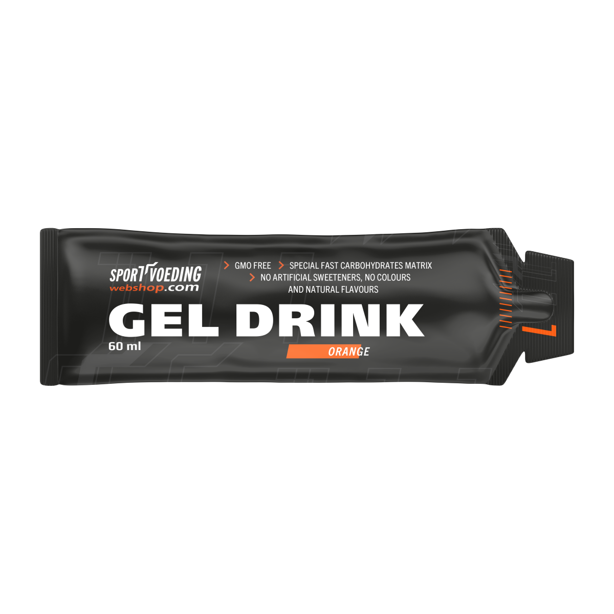 De SportvoedingWebshop Gel Drink is het sportvoeding product dat onze Special Fast Carbohydrates Matrix bevat. Hoewel het zowel de koolhydraten Maltodextrine en Isomaltulose bevat is de samenstelling tussen deze koolhydraten anders dan bij de Long Energy Drink. Dat maakt de Gel Drink geschikt als laatste isotone gel in de race. De Special Fast Carbohydrates Matrix geeft het lichaam snel energie. Een Gel Drink bevat 60ml en voorziet je lichaam van 26 gram koolhydraten. De isomaltulose dat een bron is van glucose en fructose geeft snelle energie. Het maakt de energy gel geschikt voor het laatste deel van de inspanning. Een Gel Drink bevat 103 kcal en is goed voor 30 - maximaal 45 minuten inspanning. Water drinken na inname is niet nodig. Uiteraard is het aan te bevelen om tijdens de inspanning voldoende te drinken. Onze ontwikkelde 2 in 1 Iso Drink sportdrank / dorstlesser is hiervoor zeer geschikt. De Gel Drink: No articifial sweeteners and no colours.