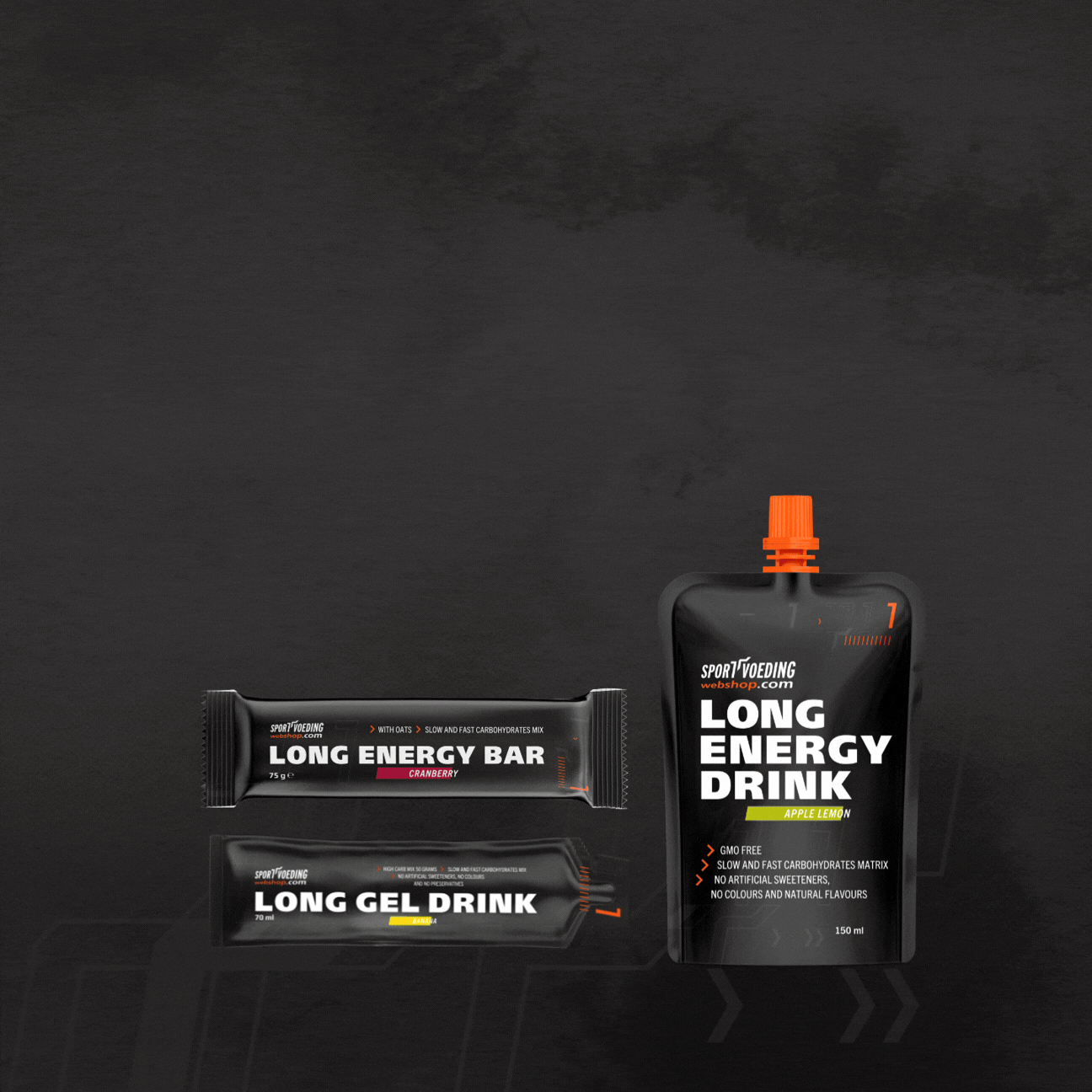 Het is één van de meest verkochte producten onder duursporters; Long Energy Drink. Het is dan ook niet voor niets dat zoveel sporters het product gebruiken. Met maar liefst 60 gram koolhydraten zorgt het voor een snelle maar langdurige energieafgifte. Een klein pakje van 150 ml geeft je maar liefst energie voor zo'n 90 minuten. De 'vloeibare energiereep' is dan ook in te nemen zonder extra water.