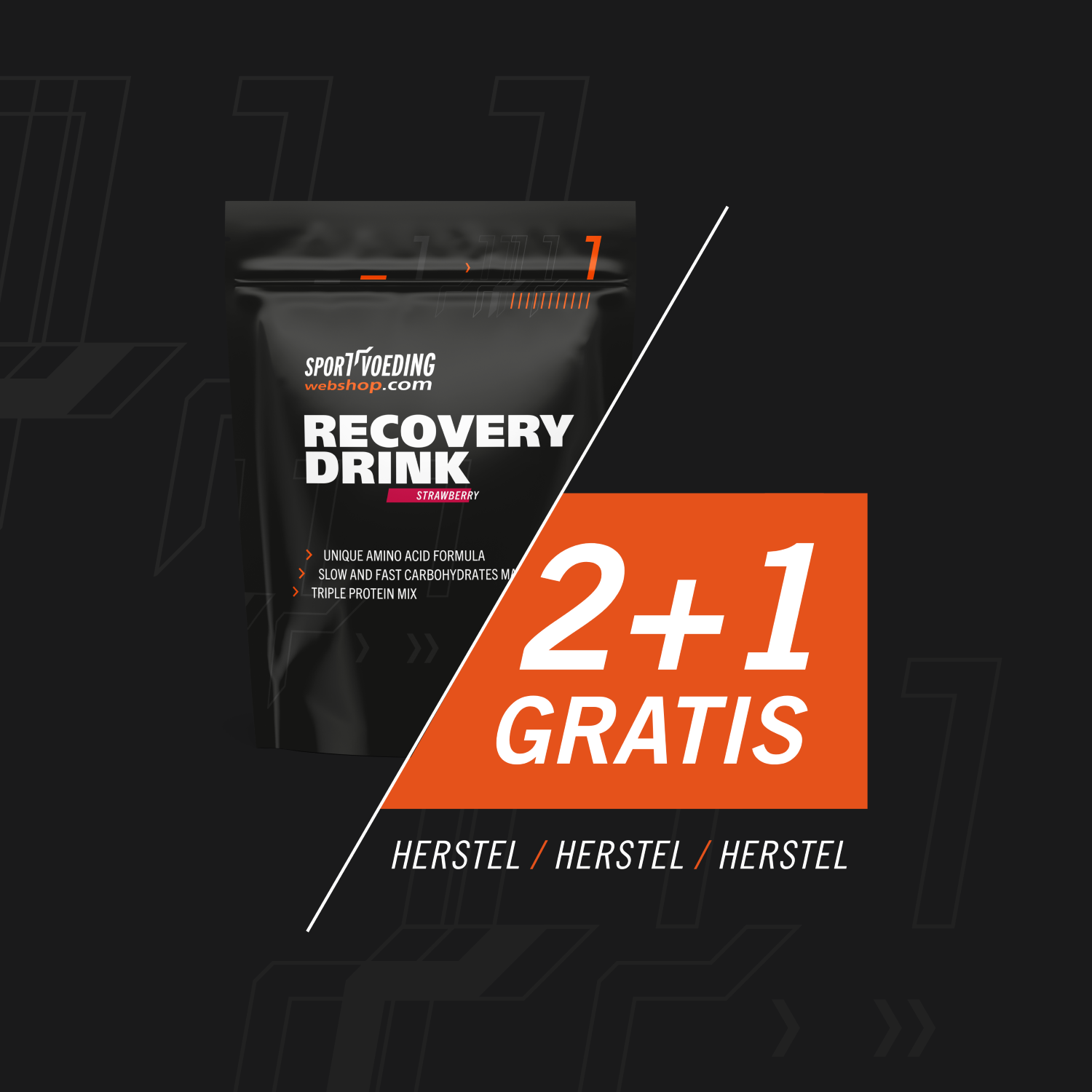 Recovery Drink van SportvoedingWebshop is al jarenlang favoriet onder vele duursporters. Daarom bieden wij tijdelijk deze 2+1 gratis actie aan voor de heerlijke smaak strawberry.