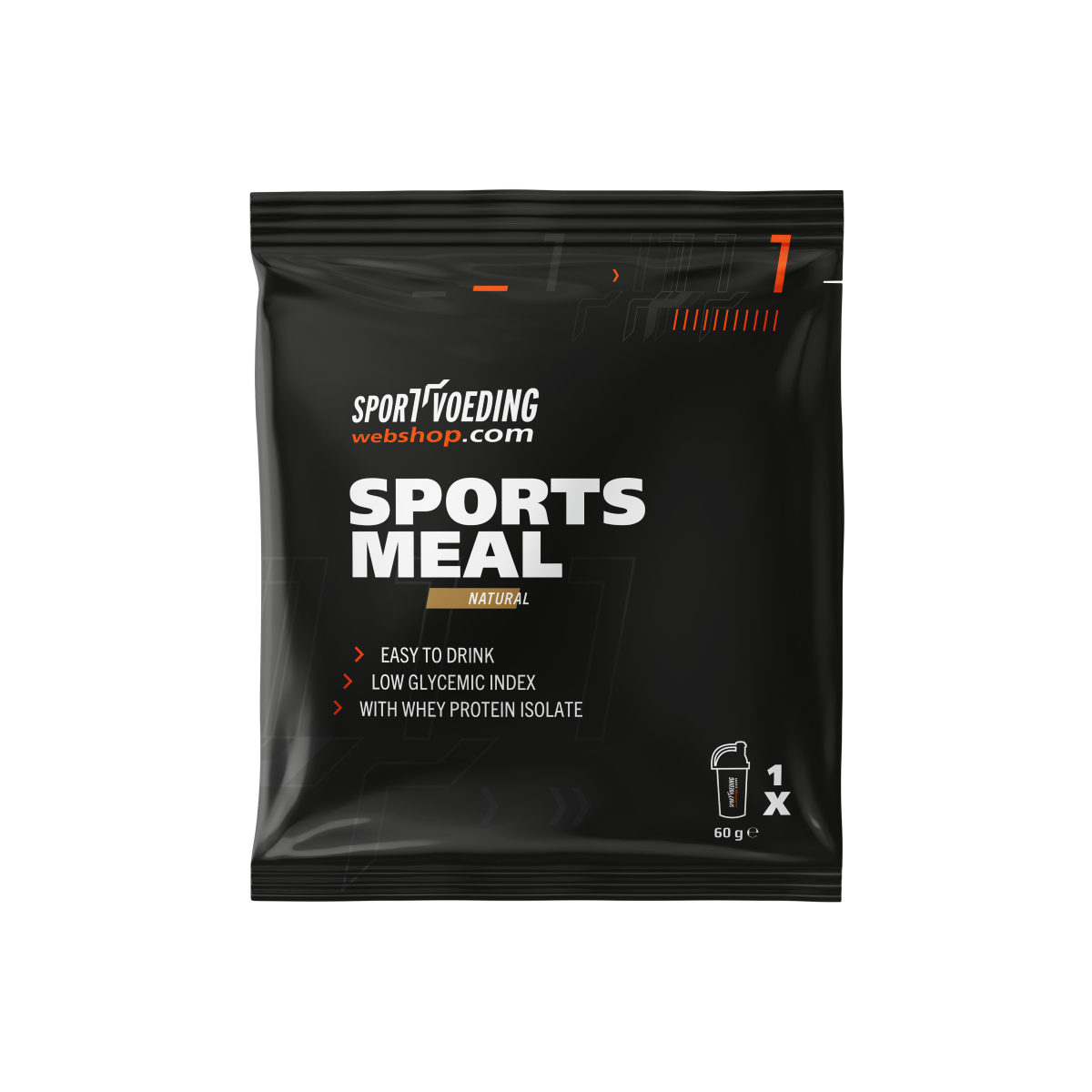 Sports Meal is het product waar wij wellicht het meest trots op zijn. Dit is het product dat het meest vernieuwend is. Nergens in de wereld van sportvoeding tref je een dergelijk product aan. Wij ontwikkelden Sports Meal op basis van onze jarenlange ervaring. Aangevuld met de feedback van ontelbaar veel sporters. Sports Meal is dé oplossing voor sporters die moeite hebben om te eten, voorafgaand aan een inspanning. Een zeer handig sport ontbijt! Tevens is Sports Meal de ideale sportvoeding maaltijd als aanvulling op je basisvoedingspatroon wanneer je intensief sport. Het meest verkochte sportontbijt Sports Meal is vanaf nu ook verkrijgbaar in een handige meeneem sachet. Ideaal voorafgaand aan je training of wedstrijd. Handig om mee te nemen voorafgaand aan je inspanning.